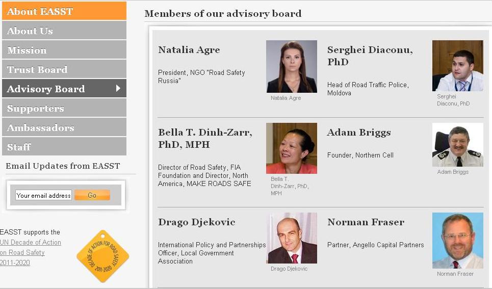 The aim of the EASST charity working in Eastern Eourope and South Caucasus is to facilitate cross-border projects on sustainable transport and road safety. EASST collaborates with local partner organizations and intensify their efforts, by sharing know-how, experience and resources. The main goal of the Alliance is to save lives and prevent injuries on the roads due to the consolidation of the world community forces and global programs.