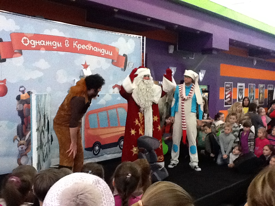 This very day the pupils of kindergartens №75 and №118 inthe town of Cheboksary watched an interactive performance «Once upon a time in Cressland». The protagonists - Bunny and Leo – were tasked by the Father Frost to take a trip to Cressland and find the best New Year gift. The journey was fascinating and sometimes hazardous. Young spectators watched the play enthusiastically, sincerely empathized and actively took part in it. After the performance all kids received lots of various gifts.